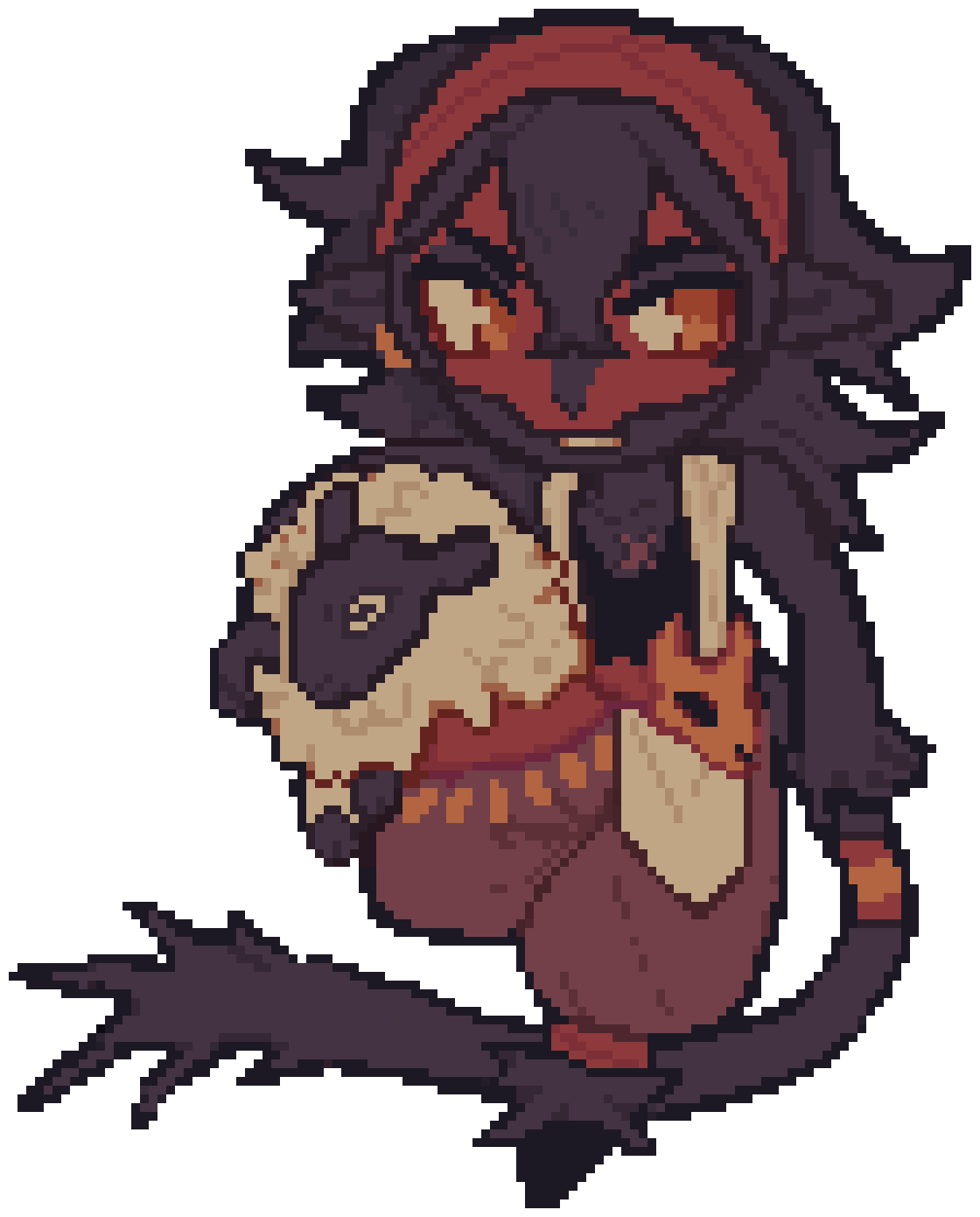 Unknown thing living in Arvika (the voices in me head). Often appears as either voices and/or allucinations to her, but to the outside eyes it just seems like Arvika is a little derangedBapf yearns for bloodshed, even if it can't have total control over her body Arvika will feel it, the urge the draw blood. Chaos doesn't understand her, the resistance to mischief and fun, how could she live like this? She doesn't even remember what she's looking for, why should we not have some fun then?Even if it tries to act like it doesn't get Arvika at all, there is something tugging at the back of its head. Is it a feeling? Is it fondness? A memory not in their soul, but somehow it knows and it yearns for it just as much as her. Spending too much time with her has made it soft, bloody. Is this what it was like back then?